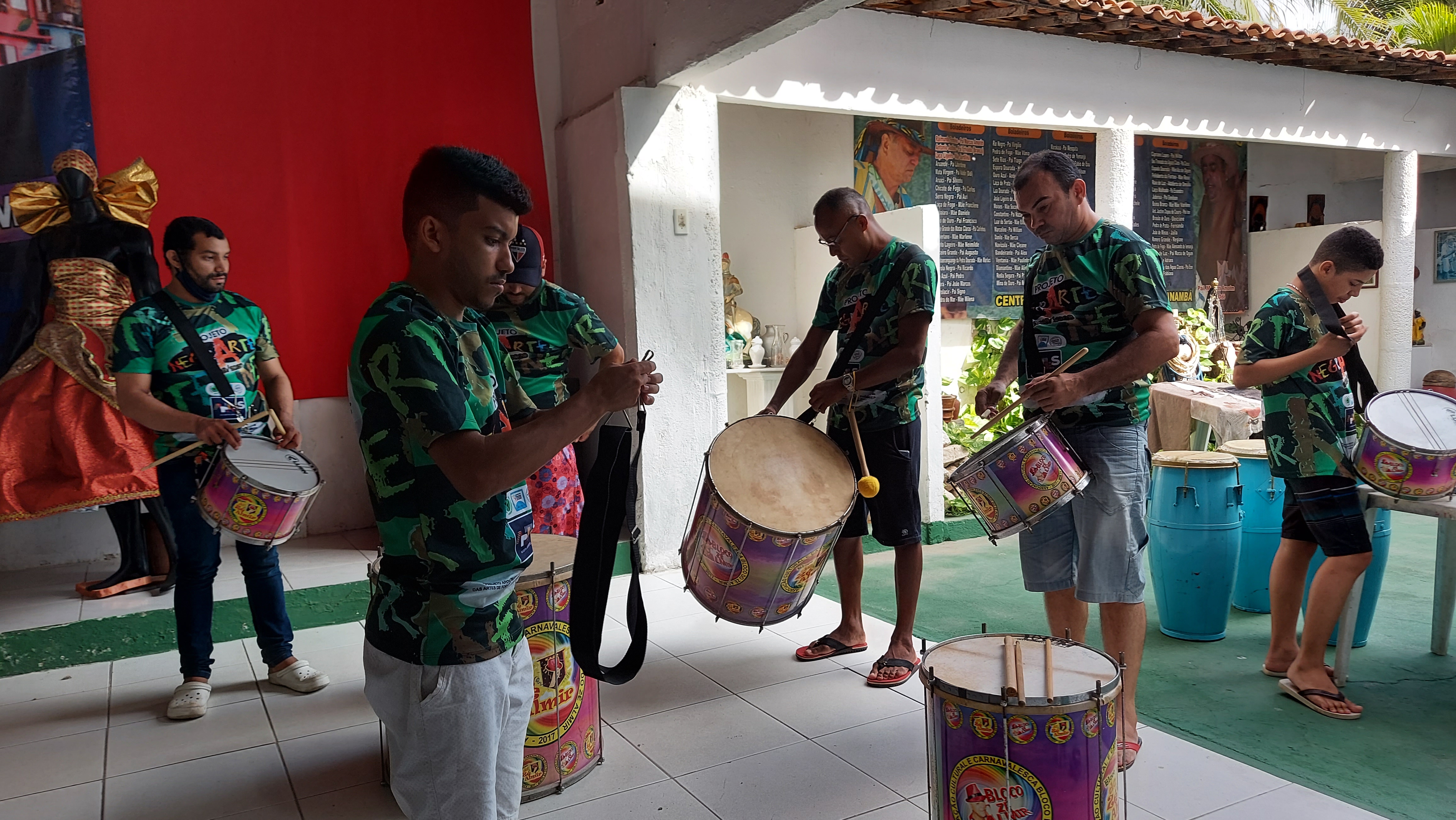 Durante a pandemia, o bloco se reinventou: articulou ações sociais com o poder público, empresários locais e o Afoxé Omõrisà Odé, distribuindo cestas básicas, água potável, álcool, máscaras e materiais de higiene para os brincantes em situação de vulnerabilidade. Em 2021, celebrou o reencontro com o “Batuque do Zé Almir”, respeitando os protocolos sanitários, e lançou a campanha pela construção de sua sede — efetivada ainda naquele ano.