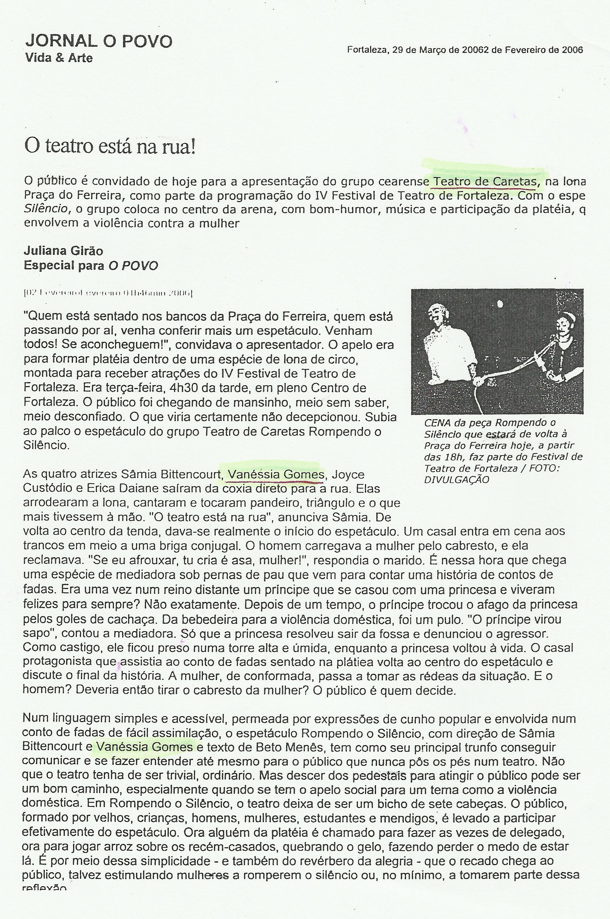 Atriz e pesquisadora em teatro. Formadora teatral e produtora. Doutoranda em Teatro (UDESC). Mestre em Artes (IFCE). Cientista Social (UECE). Artista do Grupo Teatro de Caretas. Participou de Laboratórios Teatrais: Augusto Boal, CTO, RJ - 2007, Grupo Yuyaschani 2015, 2023 (Peru), Eugenio Barba2022. Parecerista de projetos culturais e curadora de festivais de teatro. Consultora UNESCO 2013-2016.