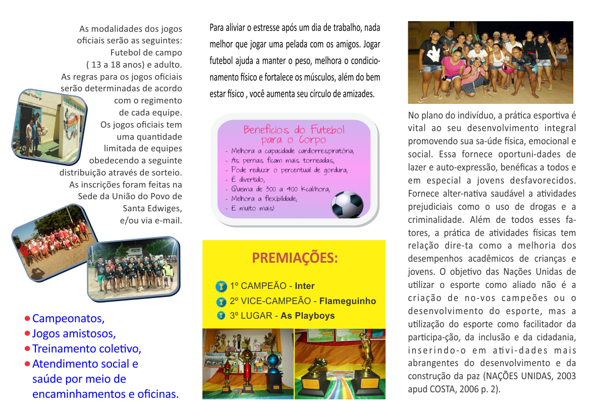 Propõe contribuir para qualidade de vida, bem-estar e inclusão de mulheres através de práticas esportivas, proporcionando e garantindo acesso da população feminina das periferias a um momento de lazer, entretenimento, visibilidade e reflexão acerca da promoção de Saúde.